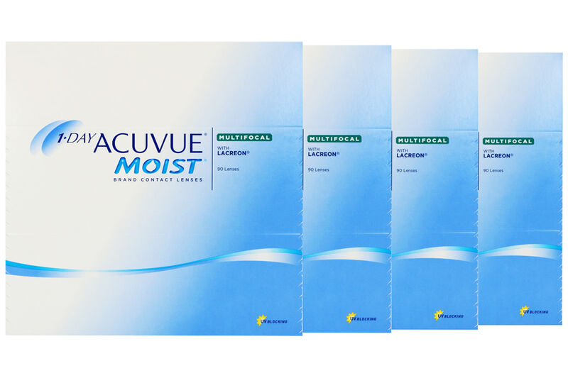 1-Day Acuvue Moist Multifocal, 4 x 90 Stück Kontaktlinsen von Johnson Johnson mit der exklusiven Lacreon Technologie für einen exzellenten Tragekomfort den ganzen Tag über und exzellentem Sehkomfort in alle Entfernungen.