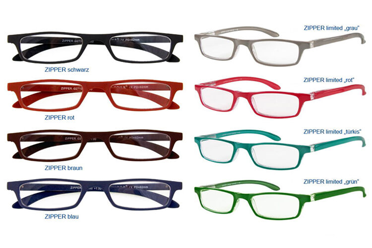 Die Zipper Lesebrillen bestehen aus Kunststoff und sind mit Federscharnieren in den Bügeln ausgestattet, die ein leichtes Überdehnen der Bügel erlauben und so einen angenehmen Sitz bei den unterschiedlichsten Kopfformen verspricht. Auch das Auf- und Absetzen wird durch die flexiblen Bügel spürbar erleichtert. Die Lesebrillen sind mit Kunststoffgläser mit Hartschicht versehen. In der Lieferung inklusive ist ein farblich passendes Etui zum Schutz der Lesebrille.