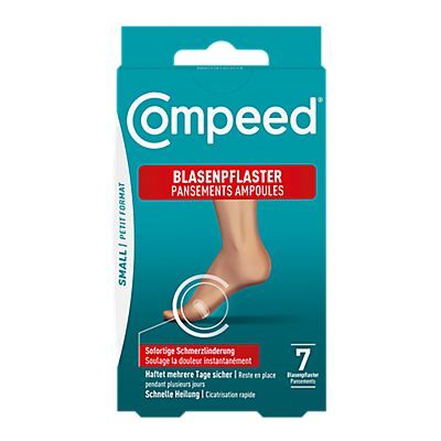 Das Compeed® Blasenpflaster Small absorbiert überschüssige Wundflüssigkeit und schafft ein Schutzpolster. So werden Schmerzen sofort gelindert und eine feuchte, optimale Heilungsumgebung für Blasen am Fuss geschaffen.