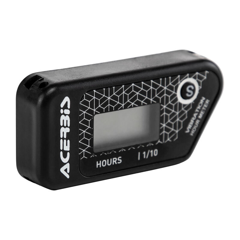ACERBIS BETRIEBSSTUNDENZÄHLER REROY, SCHWARZ ANWENDUNG: * Kann an Cross / Enduro / Motard / ATV / Moped / Maxi-Enduro / Trial montiert werden DETAILS: * Keine Stromversorgung erforderlich * Einfache Installation mit doppelseitigem Klebeband * Batterie im Lieferumfang enthalten * Er schaltet sich automatisch mit den Vibrationen des Motors ein * 2 Stundenzählerfunktionen: 1 gesamt + 1 teilweise rücksetzbar * Sperrfunktion, um die Aktivierung während des Transports zu verhindern * Wasserdicht nach IP68 * Möglichkeit, die Empfindlichkeit zu verbessern oder zu verringern * Auflösung von 0,1 Stunden * Kabelloser Betrieb