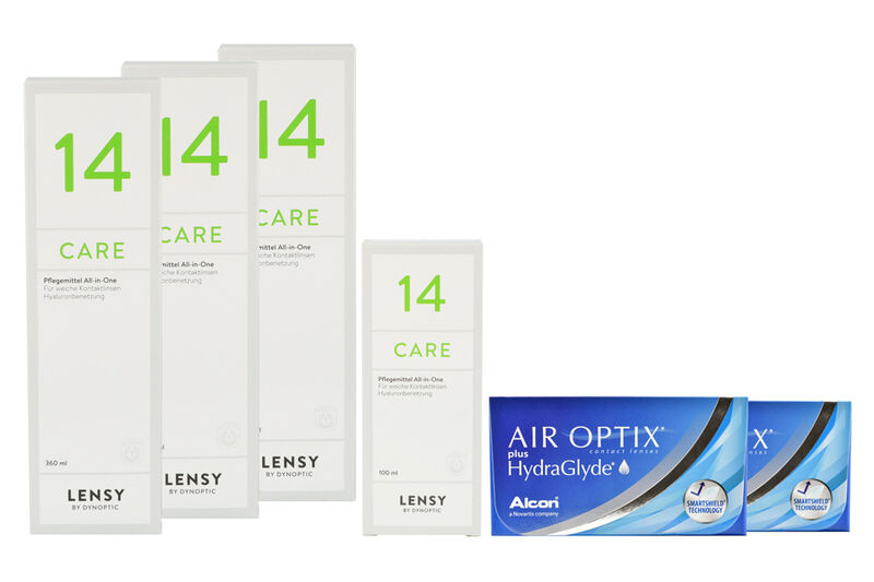 Air Optix plus HydraGlyde 2 x 6 Monatslinsen + Lensy Care 14 Halbjahres-Sparpaket