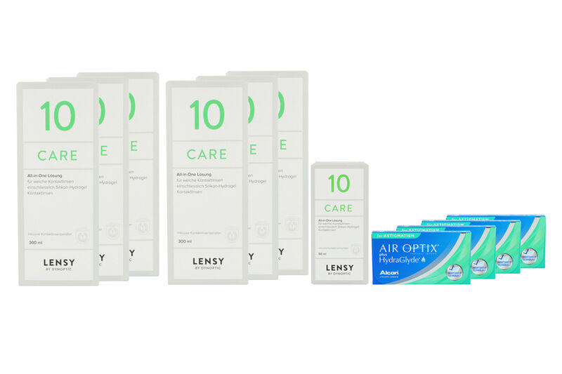 Air Optix plus HydraGlyde for Astigmatism 4 x 6 Monatslinsen + Lensy Care 10 Jahres-Sparpaket