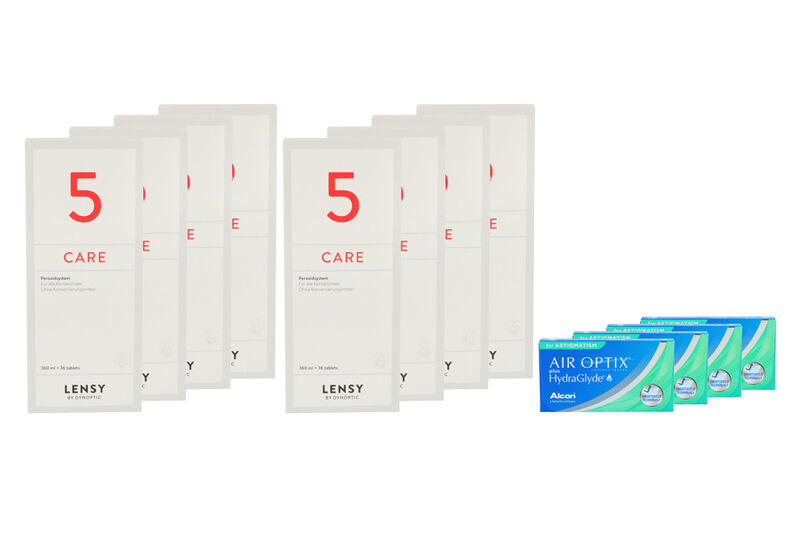 Air Optix plus HydraGlyde for Astigmatism 4 x 6 Monatslinsen + Lensy Care 5 Jahres-Sparpaket
