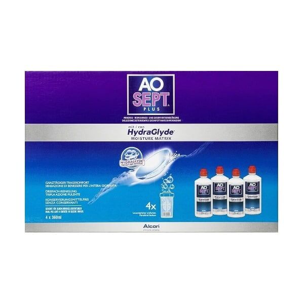 Die neue AOSept Plus HydraGlyde Peroxid-Lösung von Alcon zeichnet sich vor allem durch die patentierte HydraGlyde Moisture Matrix Technologie aus, die für noch besseren Tagekomfort sorgt. Die Dreifach-Tiefenreinigung verspricht einen lang anhaltenden Tragekomfort. Zudem profitieren Sie von einer optimierten Feuchtigkeitsbindung und einer besseren Benetzung der Kontaktlinsen – für lang anhaltenden Tragekomfort von morgens bis abends. Vorsicht: Bitte immer AOSept Plus HydraGlyde Originalbehälter verwenden! Lösung nie unneutralisiert verwenden! Wichtiger Hinweis: Bitte verwenden Sie dieses Pflegemittel nicht bei farbigen Kontaktlinsen. Bei der Anwendung bleicht die Farbe aus und macht die Kontaktlinsen unbrauchbar.