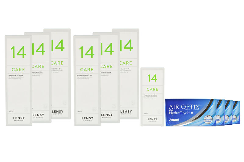 Air Optix plus HydrGlyde 4 x 6 Monatslinsen + Lensy Care 14 Jahres-Sparpaket