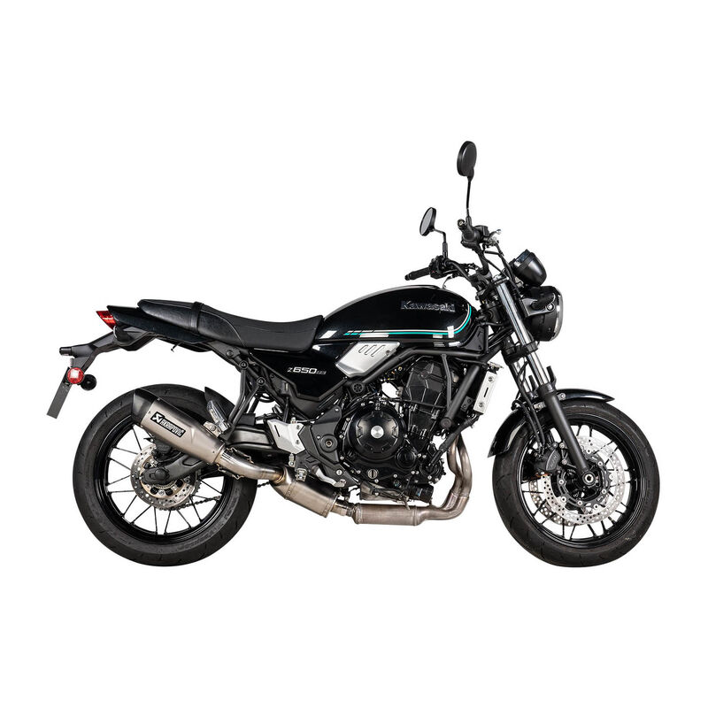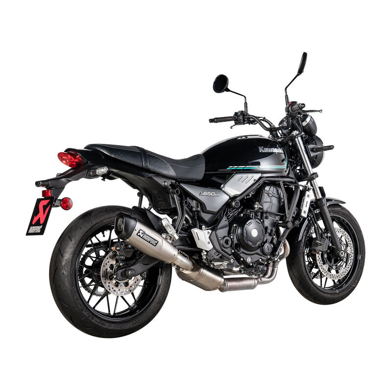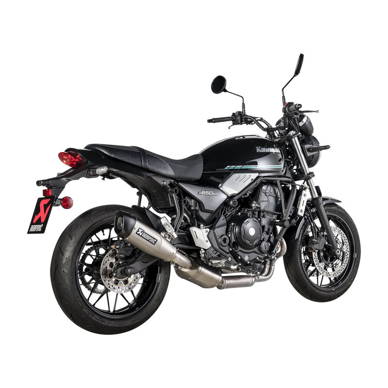 Slip-On Line Muffler * Konstruiert aus einer hochwertigen sandgestrahlten und leichten Titan-Schalldämpfer-Aussenhülle mit einer schwarz beschichteten Edelstahl-Endkappe, kombiniert mit einem Edelstahl-Verbindungsrohr und Vorschalldämpfer, Dieses System ist mit einem stilvollen Akrapovic-Aufkleber in Schwarz auf dem Schalldämpfer versehen * Der Austausch der Auspuffanlage wirkt sich sowohl auf das Gesamtbild des Motorrads als auch auf sein Gewicht und seine Leistung aus * Sie ist 1.7 kg leichter (eine Gewichtsersparnis von 29,2 %) im Vergleich zur serienmässigen Anlage und bringt einen Leistungszuwachs von 1,1 kW (1,5 PS) bei 5.300 U/min und einen Drehmomentanstieg von +1.9 Nm bei 5.300 U/min im Vergleich zu einer Z650RS mit serienmässigem Auspuff * Dieses Plug-and-Play-System, das eine tadellose Gasannahme und einen satten Akrapovic-Sound bietet, erfordert kein Re-Mapping der ECU und erfüllt die Euro-5-Norm