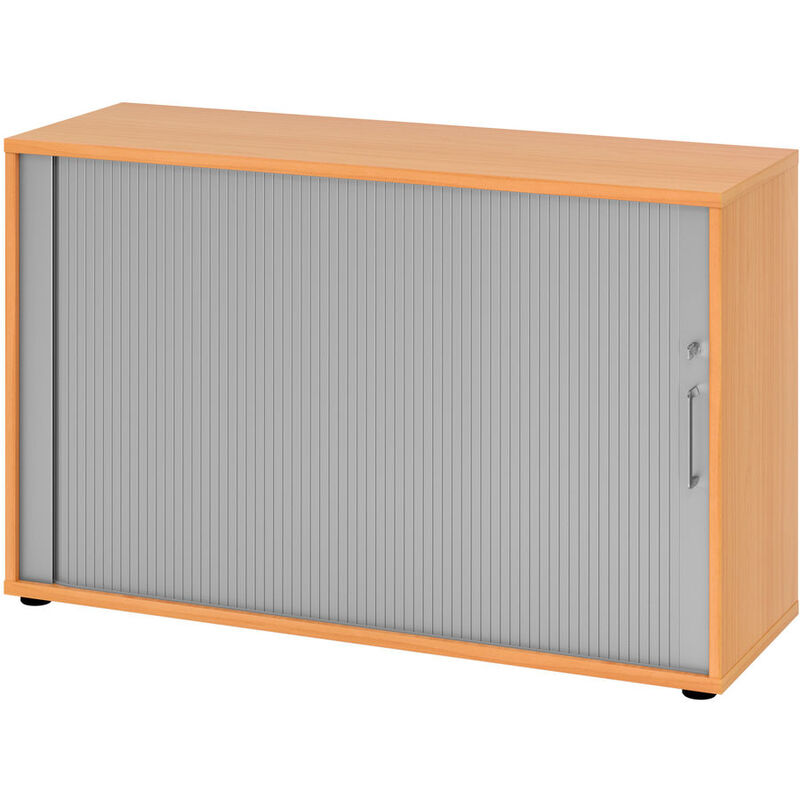 Rollladenschrank – Aktenschrank Office – Holzwerkstoff – B 120 T 40 H 74.8 cm – Falt-Rückwand 3 mm; Höhenjustierung bis 10 mm durch Boden mit Stellfüssen – Seiten, Mittelseite 19 mm; Böden und Fächer 22 mm