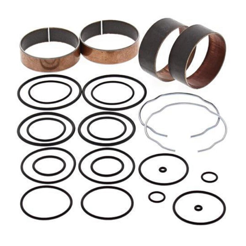 ALL BALLS GABEL BUCHSEN KIT Komplettes Kit zur Überholung der Gabel, mit vier Teflonhülsen und allem notwendigen Zubehör, Kupferringe, O-Ringe usw. NEUE SIMMERRINGE SOLLTEN UNBEDINGT DAZUGEKAUFT WERDEN. Günstiger und besser als OEM Qualität. Die Führungsbuchsen wurden Dyno-getestet und zeigten nach 500-tausend Dämpfbewegungen deutlich weniger Abnützung gegenüber Original-Buchsen. Dies hält das Gabeloel sauber und die Lauf- und Dämpfungseigenschaften konstant! Der tatsächliche Packungsinhalt kann vom Bild abweichen. Es wird immer ein Set mit allen benötigten Teilen für dein Fahrzeug unter _- PASSEND -_ auf geliefert.