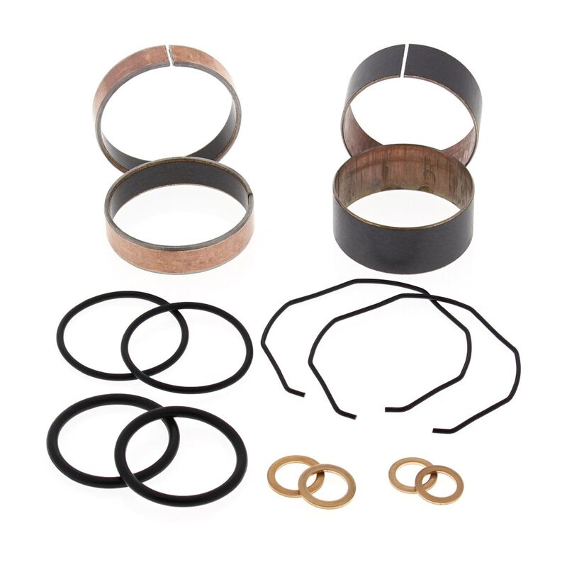 ALL BALLS GABEL BUCHSEN KIT Komplettes Kit zur Überholung der Gabel, mit vier Teflonhülsen und allem notwendigen Zubehör, Kupferringe, O-Ringe usw. NEUE SIMMERRINGE SOLLTEN UNBEDINGT DAZUGEKAUFT WERDEN. Günstiger und besser als OEM Qualität. Die Führungsbuchsen wurden Dyno-getestet und zeigten nach 500-tausend Dämpfbewegungen deutlich weniger Abnützung gegenüber Original-Buchsen. Dies hält das Gabeloel sauber und die Lauf- und Dämpfungseigenschaften konstant! Der Tatsächliche Packungsinhalt kann vom Bild abweichen. Es wird immer ein Set mit allen benötigten Teilen für dein Fahrzeug unter _- PASSEND -_ auf geliefert.