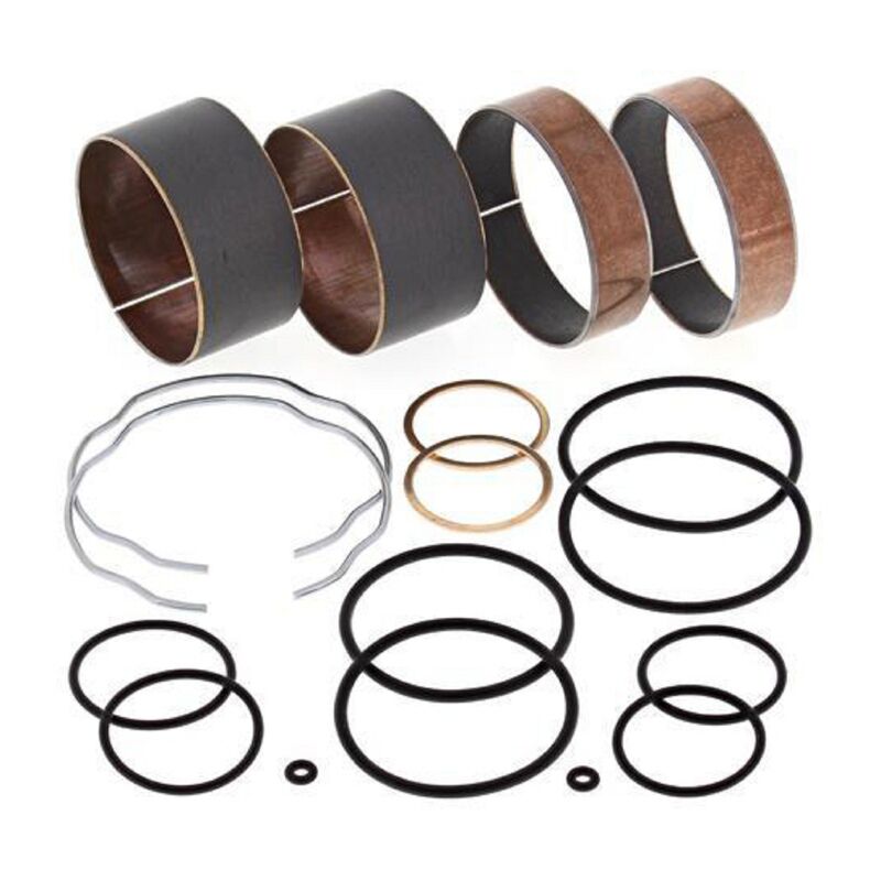ALL BALLS GABEL BUCHSEN KIT Komplettes Kit zur Überholung der Gabel, mit vier Teflonhülsen und allem notwendigen Zubehör, Kupferringe, O-Ringe usw. NEUE SIMMERRINGE SOLLTEN UNBEDINGT DAZUGEKAUFT WERDEN. Günstiger und besser als OEM Qualität. Die Führungsbuchsen wurden Dyno-getestet und zeigten nach 500-tausend Dämpfbewegungen deutlich weniger Abnützung gegenüber Original-Buchsen. Dies hält das Gabeloel sauber und die Lauf- und Dämpfungseigenschaften konstant! Der tatsächliche Packungsinhalt kann vom Bild abweichen. Es wird immer ein Set mit allen benötigten Teilen für dein Fahrzeug unter _- PASSEND -_ auf geliefert.