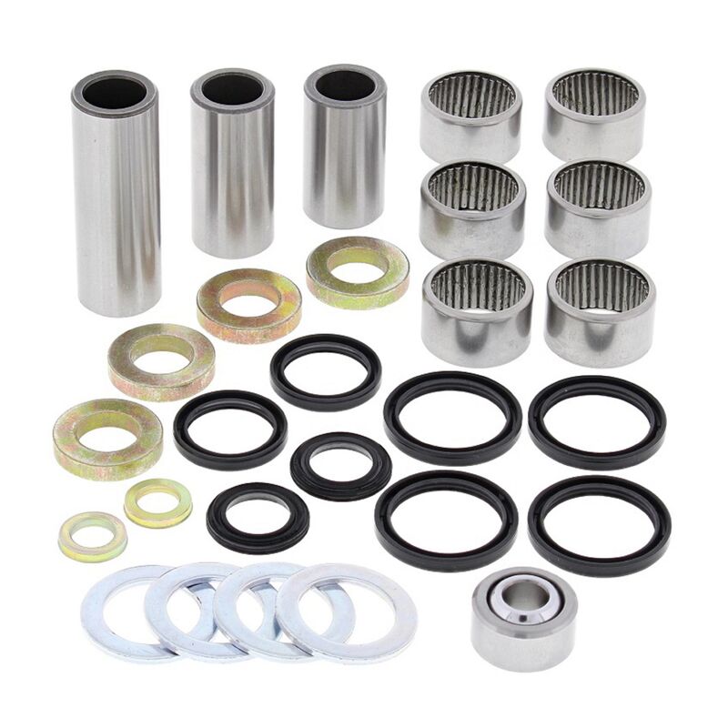 ALL BALLS UMLENKLAGER KIT Komplettes Lagerkit von All Balls für die Umlenkung. Mit Nadelhülsen, Buchsen, Bolzen und Dichtringen. Inklusive unterem Dämpferlager! Nur mit perfekt frei laufenden Lagern in der gesamten Aufhängung kann dein Fahrwerk wirklich gut arbeiten. Deshalb sollten Schwingen-, Umlenk- und Dämpferlager immer gut gewartet und von Zeit zu Zeit ausgetauscht werden. Wenn sich bereits Lagerspiel bemerkbar macht, ist es sowieso höchste Zeit! Der tatsächliche Packungsinhalt kann vom Bild abweichen. Es wird immer ein Set mit allen benötigten Teilen für dein Fahrzeug unter _- PASSEND AUF -_ geliefert.