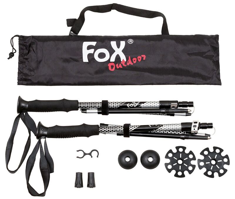leichte Allround-Trekkingstöcke mit ANTISHOCK-Federung kompakt verstaubar durch Faltmechanismus einfache und stufenlose Höhenverstellung von ca. 115 bis 135 cm durch Schnellverschluss ergonomisch geformter, kantenloser Griff aus weichem, atmungsaktivem und isolierendem EVA-Schaumstoff verstellbare, gepolsterte Handschlaufen robuste, rutschfeste Hartmetallspitze werkzeugfreier Tellerwechsel Zubehör: je 2 Trekking- und Schneeteller, 2 Gummipuffer und 1 Halteclip inkl. Tragetasche mit Schultergurt Packmass: ca. 45 x 9 x 5 cm Gewicht pro Stock ohne Zubehör: ca. 340 g Gewicht Paar inklusive Zubehör: ca. 740 g