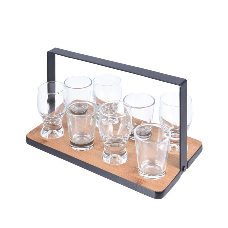 - Mit acht Gläsern für kleine Köstlichkeiten