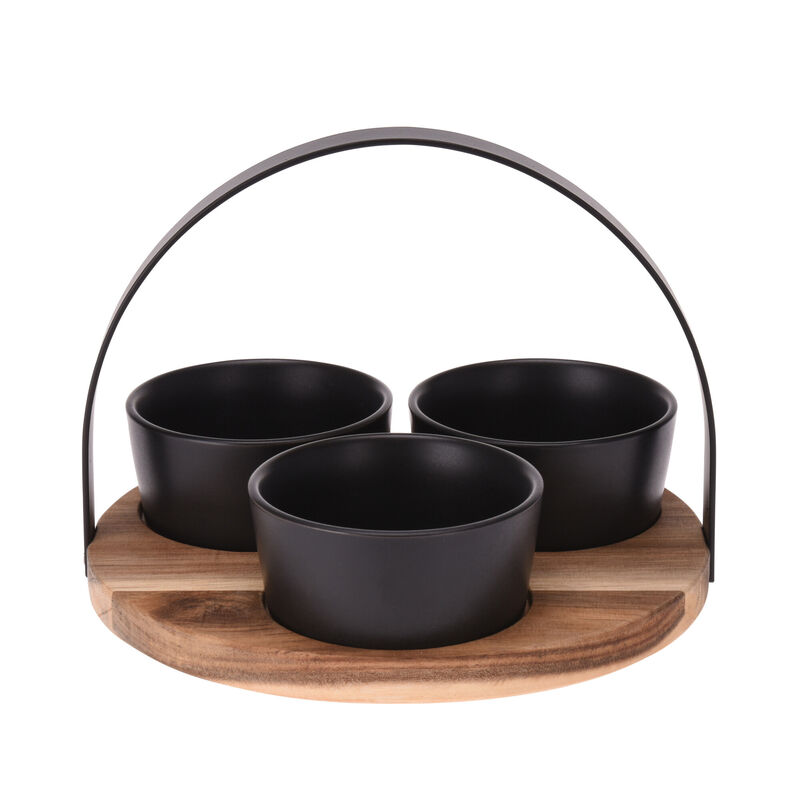- Hübsch angerichtete Snackschalen auf runder Servierplatte