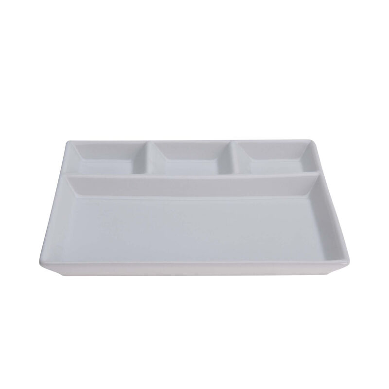 - Rechteckiger Porzellanteller mit vier Fächern