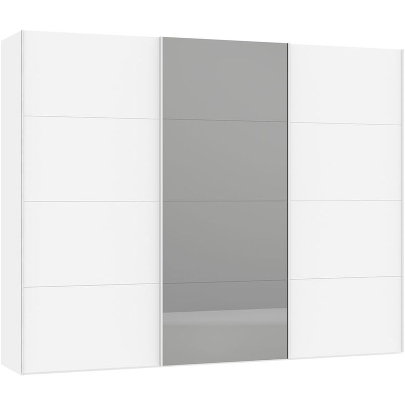 Schwebetürenschrank – Kleiderschrank Arena Collection – Holzwerkstoff – B 303.1 T 65 H 220 cm – Korpus Premiumweiss, Front Premiumweiss/Spiegel, Aufclipprofil premiumweiss, inkl. 3 Tablare und 3 Kleiderstange