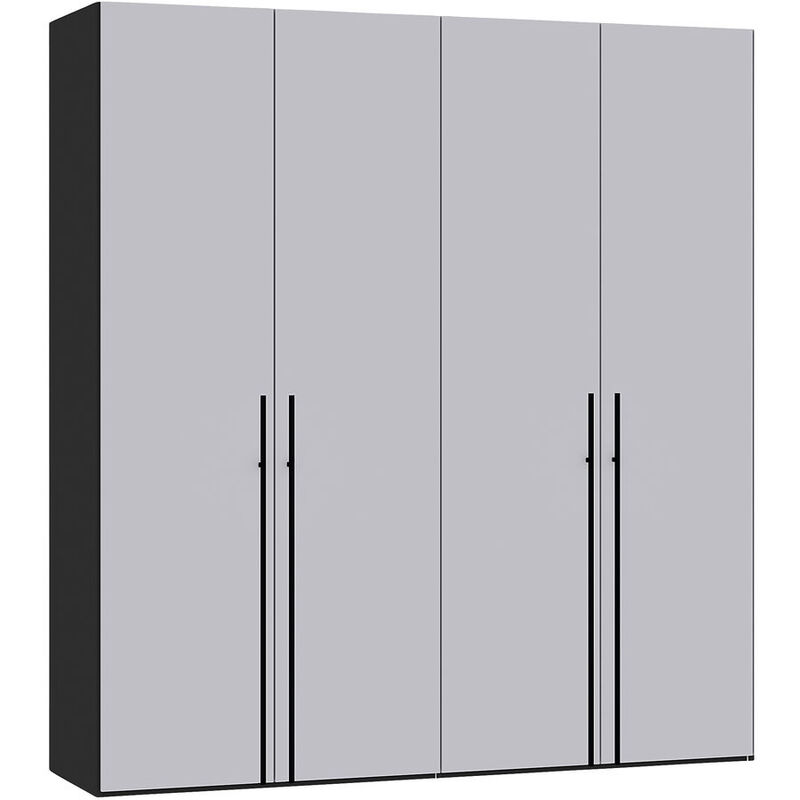 Drehtürenschrank – Kleiderschrank Arena Collection – Holzwerkstoff – B 202.5 T 58.5 H 220 cm – Korpus Novaschwarz, Front Glas hellgrau matt, Griffe schwarz matt, inkl. 2 Tablare und 2 Kleiderstangen