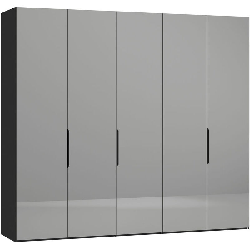 Drehtürenschrank – Kleiderschrank Arena Collection – Holzwerkstoff/Glas – B 253 T 59 H 220 cm – Korpus Novaschwarz, Front Spiegel dunkel, Griffprofil schwarz matt, inkl. 3 Tablare und 3 Kleiderstangen