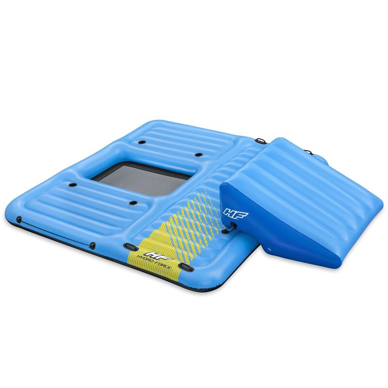 Diese grosszügige Badeinsel bietet Entspannung und Badespass für fünf Personen. Geniesse die Abkühlung auf der Sitzfläche mit Netzboden oder gleite über die Rutsche vergnüglich ins Wasser. Dank der robusten Griffe und der Halteleinen kannst du aus dem Wasser mühelos wieder auf die Badeinsel gelangen. Integrierte Getränkehalter sorgen dafür, dass ein erfrischender Durstlöscher immer griffbereit ist. Lass dich mit Familie und Freunden auf dem Wasser treiben und freue dich auf unvergessliche Stunden auf dieser aussergewöhnlichen Schwimminsel!