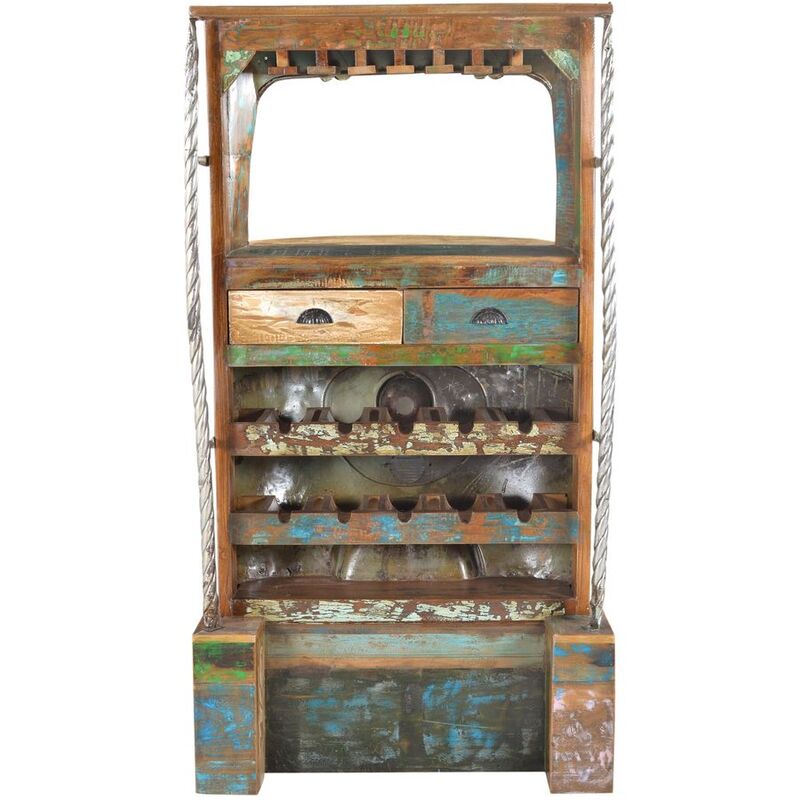 Barschrank – Barschrank Thats It – Altholz – B 97 T 52 H 180 cm – 2 Schubladen, Ablage für 10 Flaschen und 18 Gläser