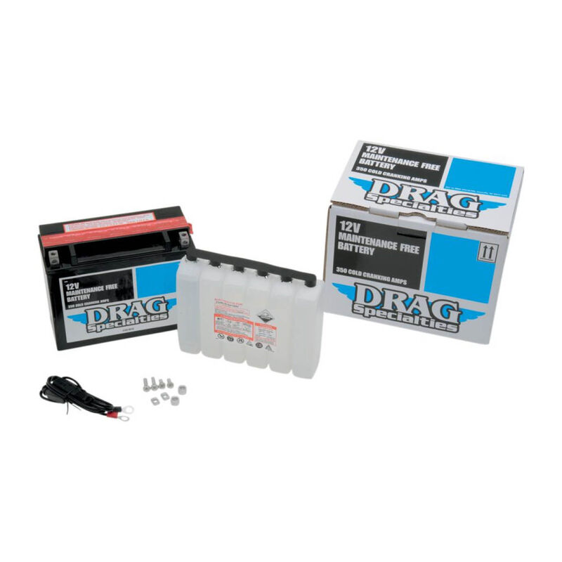 DRAG SPECIALTIES AGM BATTERIE Speziell für leistungsstrake, schwer zu startende Motoren entwickelt, die zusätzliche Startleistung brauchen. Ausgezeichnete Vibrationsbeständikeit und Haltbarkeit sorgen für eine lange Lebensdauer. Die AGM Batterie mit Glasfservlies reduziert den Wasserverlust und garantiert somit, dass die Batterie immer genügend Säure enthält.( Säurepack im Lieferumfang enthalten) FEATURES: * Nennspannung: 12 Volt * Abmessungen L/B/H: ca.205 x 87 x 162 mm * Batteriekapazität: 21 AH * Maximale Ladeleistung: 2.1 A * Kaltstartleistung/Ampere: 350 A * Gewicht: 6.5 kg * Position Pluspol: Rechts vorne