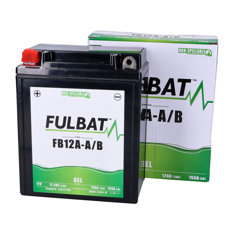 Leistungsstarke, wartungsfreie und auslaufsichere Gel-Batterie. Das geschlossene Batteriegehäuse kann in jeder Einbaulage montiert werden, kein vorheriges Füllen oder Laden notwendig. Längere Lebensdauer und geringere Selbstentladung im Gegensatz zu vergleichbaren Säurebatterien. * Batterie Typ: YB12A-A bzw. YB12A-B (12N12A-4A-1) * Spannung: 12V * Kapazität (10h): 12Ah * Kälteprüfstrom (-18°C/ 0°F): 155A * Maße (±2mm) HxBxT: 161x134x80mm * Anschlusstyp: B * Gewicht: 4,35kg