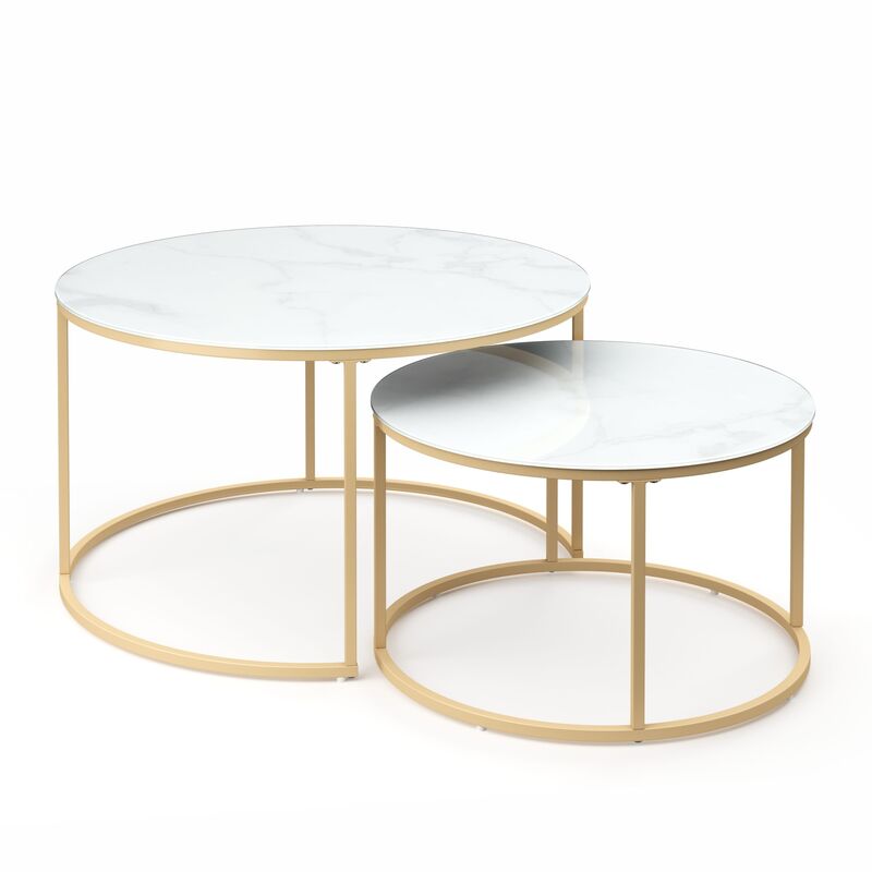 Mit diesem Couchtisch gestaltest du dein Zuhause modern und einladend! Die zwei Glastische in Marmoroptik mit Metallgestell in Gold sind ideal für alle, die Wert auf simples Design legen. Wenn du gerne Freunde zu dir einlädst, profitierst du von der grossen Ablagefläche für Popcorn, Drinks oder eine Käseplatte. Bei Nichtgebrauch kannst du den kleinen Tisch unter den grossen Tisch verstauen, um Platz zu sparen. Bestelle dir jetzt Wohnzimmermöbel bei GONSER – morgen geliefert!