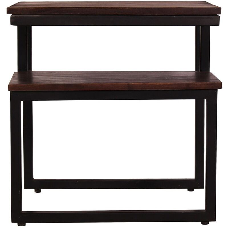 Beistelltisch – Beistelltisch Mirah – Altholz – B 51 T 51 H 52 cm – Obere Tischplatte 51×51 cm, untere Tischplatte 27,5×51 cm, Abstand zwischen den beiden Tischplatten 13 cm – 1 Ablageboden