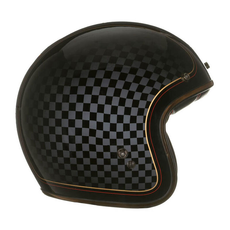 BELL CUSTOM 500 JETHELM MIT STRASSENZULASSUNG, IM DESIGN VON ROLAND SANDS RSD CHECK IT. * Helmschale aus Fiberglas * Helmgrössen: XS (54-55cm), S (55-56cm), M (57-58cm), L (58-59cm), XL (60-61cm), XXL (62-63cm) * 5 Helmschalen (XS-S & M & L & XL & XXL) * Gestepptes Innenfutter mit farblich abgesetzten Nähten * Universal-Druckknöpfe für Visier oder Schirmchen * Dekorative kupferfarbene Chromeleiste * Doppel-D Ring Verschluss * BELL-Logo entfernbar * Stylische Helmtasche aus Kunstleder inklusive * Aktuelle ECE Norm 22.05. * Gewicht: 1200 Gramm ~ 50 * Hersteller: BELL (USA) * Modell: Custom 500 (RSD Check It) * Herstellergarantie: 5 Jahre BELL Jethelm Custom 500 mit Strassenzulassung und glänzend kariertem Design von ROLAND SANDS. Ein weiteres gelungenes Design aus der Zusammenarbeit zwischen BELL und ROLAND SANDS. > Grössentabelle Bell Helme