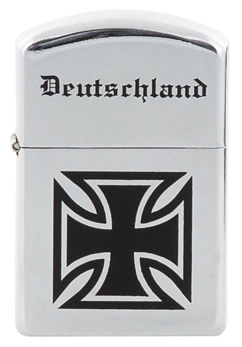 Benzin-Sturmfeuerzeug, chrom poliert, "Deutschland", unbef.