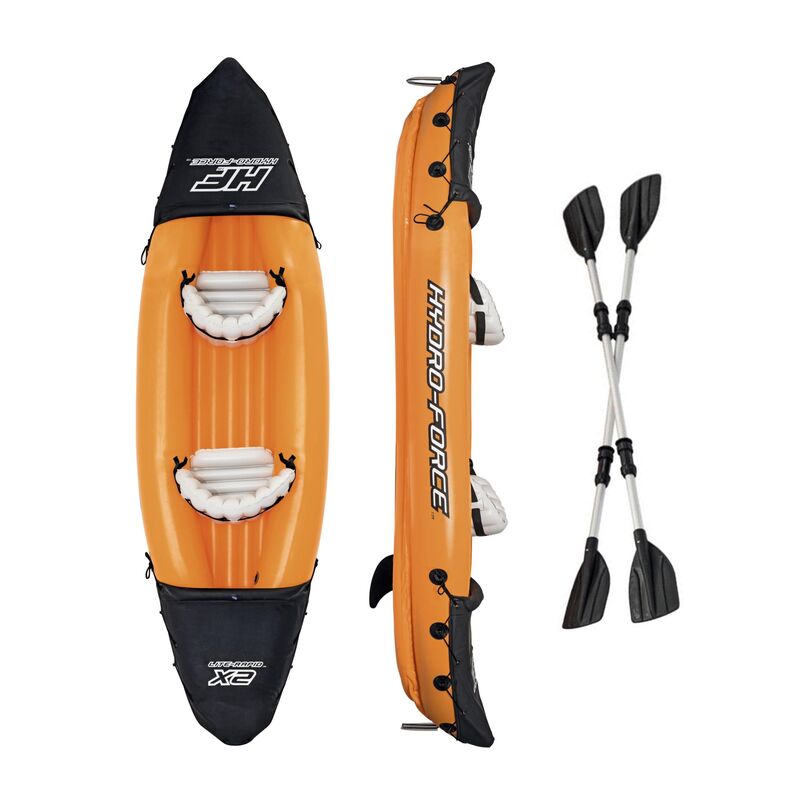 Dieses Doppelkajak ist das ideale Boot für kurze Ausflüge auf dem Wasser zu zweit. Die passgenaue Konstruktion verhindert das Eindringen von Wasser in den Innenraum und die aufblasbaren Kissen sorgen für angenehmen Sitzkomfort. Dank den mitgelieferten Paddeln steht dem nächsten Bootsausflug nichts mehr im Weg!