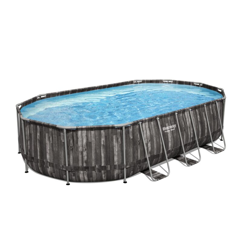 Ein heisser und wunderschöner Sommertag im eigenen Swimming Pool? Mit diesem Bestway Pool im Komplett-Set werden alle deine Wünsche wahr. Der Aufbau ist kinderleicht und benötigt keinerlei Werkzeug. Durch das robuste, dreilagige PVC-Material der Poolwände sowie die stabilen Stahlrahmen-Verbindung kannst du dich jahrelang an deinem Pool erfreuen. Zusätzlich sorgt die Pumpe und der ChemConnect Chemikaliendosierer für sauberes und glasklares Wasser. Sorge für fröhlichen Badespass im Garten mit diesem ovalen Pool in Holz-Optik!