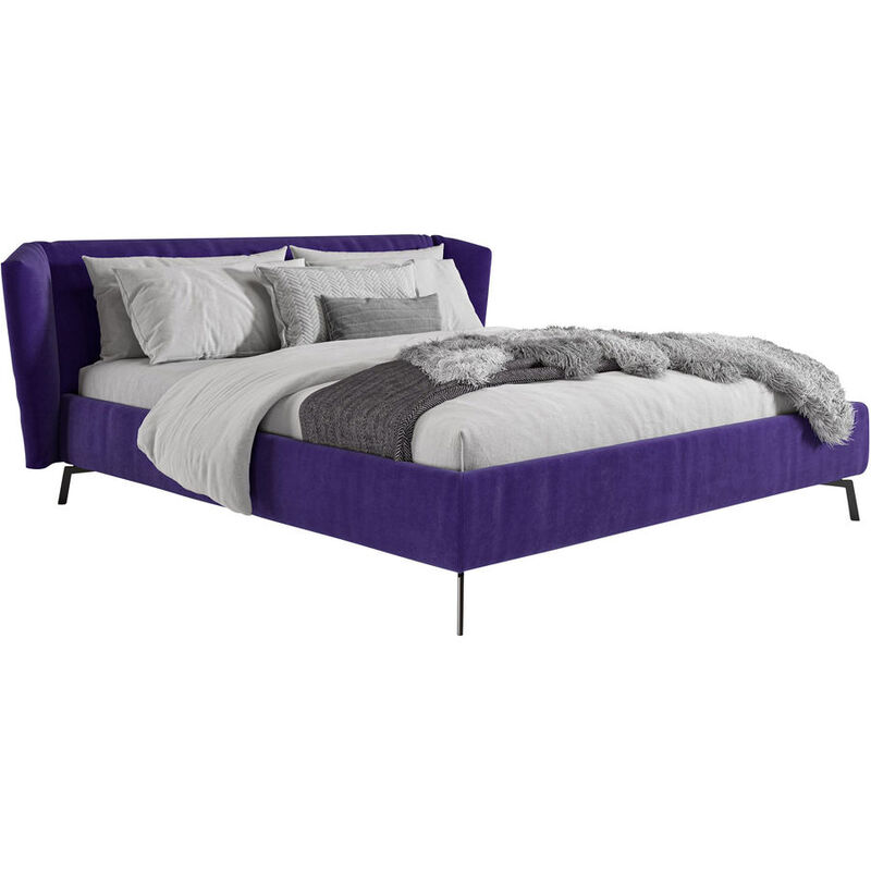 Polsterbett – Bett Adele – Polyester – B 160 T 200 H 97 cm – Stellmass: B 215 L 221 H 97 – Polsterbett inkl. Kopfteil und Metall Füsse in Metall schwarz matt, ohne Matratze und Einlegerahmen