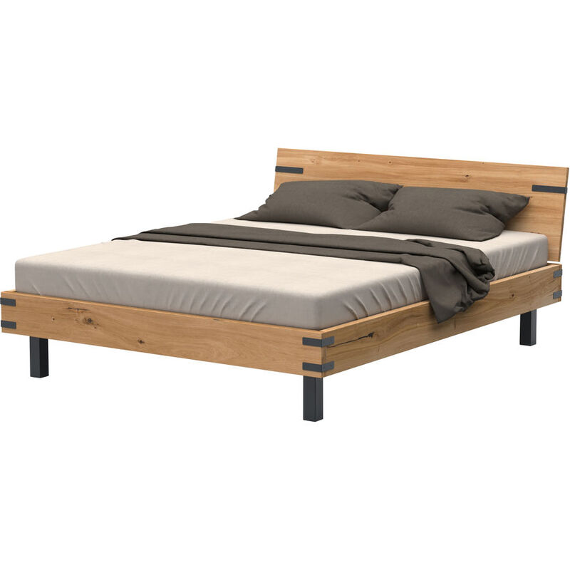Bett inkl. Kopfteil 140×200 – Bett Allan – Wildeiche – B 140 T 200 H 84 cm – Stellmass: 147x207cm – Ohne Bettinhalt (Matratze / Einlegerahmen) und exkl. Nachttisch, Bettrahmen mit Zierwinkel