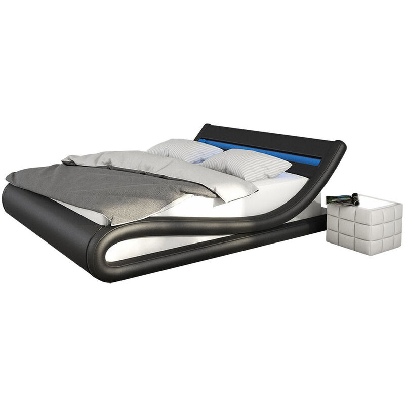 Bett – Bett Dylan – Kunstleder – B 180 T 200 H 79 cm – Stell:B192xL251cm, Höhe Rahmen ca.37-40,5cm, Höhe Kopfteils ca.79cm, Lattenrostabsenkung ca.9,5cm – inklusive Lattenrost, ohne Matratze, integrierter Lichtleiste im Kopfteil, freitragende Mittelstrebe
