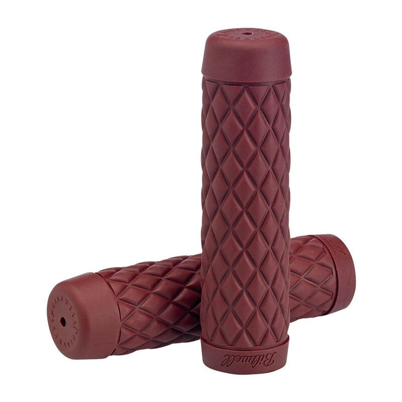 BILTWELL GRIFFGUMMIS TORKER, OXBLOOD, 22MM Die Diamant Pillow Oberfläche ist komfortabel. Da es keinen Innenflansch gibt, ist der Torker-Griff eine ausgezeichnete Wahl – sauber und schlank. Das flanschlose Design sieht auf Café-Racern, japanischen und britischen Oldtimern und modernen Cruisern großartig aus. Geformte TPV-Gummikonstruktion. TECHNISCHE DETAILS * UV- und witterungsbeständige TPV-Gummimischung * Im Spritzgussverfahren hergestellt * Gerillt für die Installation von Sicherheitsdrähten INSTALLATIONSHINWEISE Wir empfehlen, die Griffe mit WD-40 zu montieren und empfehlen, sie über Nacht trocknen zu lassen. Das Anbringen eines Sicherheitsdrahtrings an jedem Ende ist eine gängige Praxis, und alle unsere Griffe haben Rillen, um dies zu ermöglichen. Biltwell,biltwell,biltwell HD grips,Biltwell Harley griffe,grip,lenkergriff,custom,vintage,cafe racer,bobber,tracker,scrambler,brat,street bike,custom bike,krytongriff,harleygriff,lenkergriffe,gummigriffe,griffgummi,handgriffe,klebgriffe,poignees,manopole,grips,22mm,25mm,7/8 Zoll,1 Zoll,griff