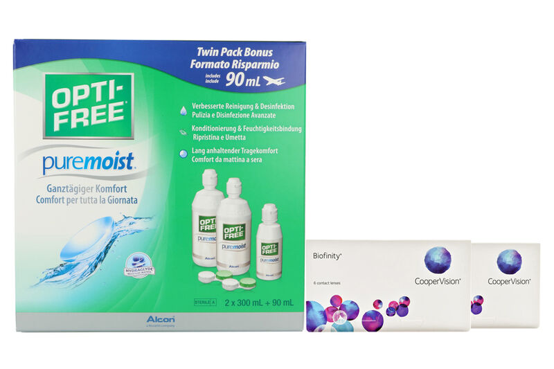 Biofinity 2 x 6 Monatslinsen + Opti Free Pure Moist Halbjahres-Sparpaket