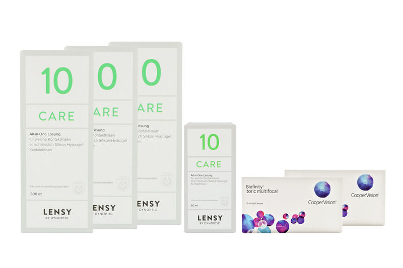 Biofinity toric multifocal 2 x 6 Monatslinsen + Lensy Care 10 Halbjahres-Sparpaket