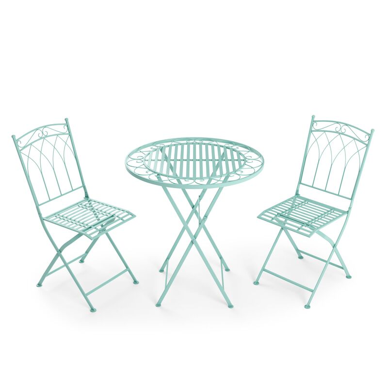 Dieses Bistroset JEAN in Mint verleiht deiner Terrasse eine stilvolle Note. Es besteht aus einem Tisch und zwei Stühlen. Egal, ob du drinnen oder draussen bist, diese Balkonmöbel sind der perfekte Begleiter für entspannte Stunden nach einem anstrengenden Tag. Dank seiner platzsparenden Eigenschaften ist es ideal für kleine Balkone und bei Nichtgebrauch kannst du es ganz einfach zusammenklappen und wegstellen. Worauf wartest du noch? Hol dir jetzt dieses Bistroset für deinen Balkon!