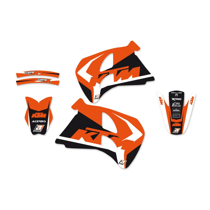 BLACKBIRD DEKOR KIT, DREAM GRAPHIC 4 Customize your motorbike in the colours and design of your choosing with Blackbird graphic kits. Dream Graphic IV sets are sober and give the machine a more “racing” look. * Graphic kit: radiator shrouds, front and rear mudguard * Made with a laminated sticker coated with very strong glue * Patterns printed in ultraviolet-resistant ink * Kit resists applied force and impacts in motocross use Passende Nummerntafeln-Dekore mit gedruckter, eigener Nummer unter Zubehör erhältlich! Wir empfehlen bei der Montage eines Dekorkits immer neue Plastikteile zu verwenden, diese findest Du hier: [cat+]11900-1[cat-][cat+]12003-1[cat-] BB-2530N,Blackbird Dekor Kit, Dream Graphic 4,BLACKBIRD Dream Graphic 4 Deko-Kit KTM,Dekor Kit,2530N,Verzierungssatz,Dekorationsset,Gestaltungsset,Dekorationssatz,Verschönerungsset,Designkit,Deko-Set,Zieratkit,Ausschmückungsset,Dekorative Sammlung,dekorkit, dekorsatz, klebersatz, stickerkit, kleberkit, kleberdekor, stylekit, decal, autocollant moto, filetsatz, foliensatz, motorrad aufkleber, moto decal, kit adesivi moto Passend auf: KTM 125 EXC 125 SX
