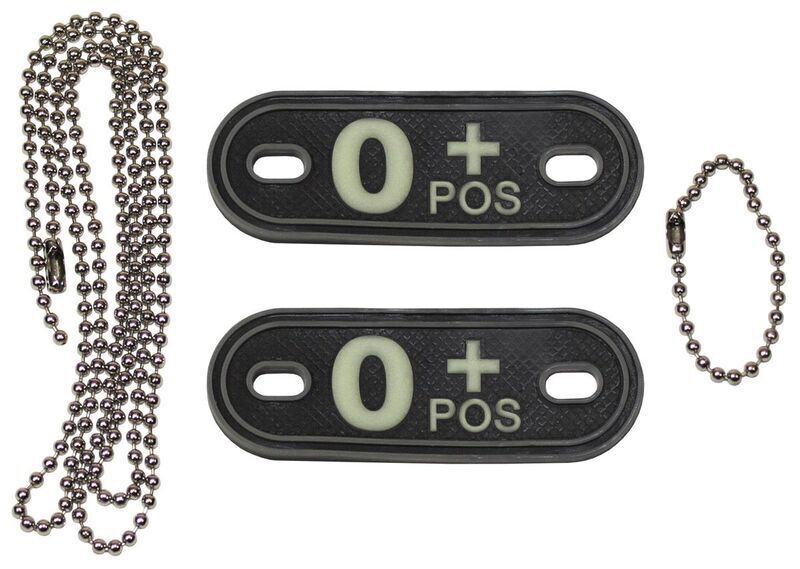 Blutgruppenmarken, mit Ketten, nachleuchtend, "O POS", 3D