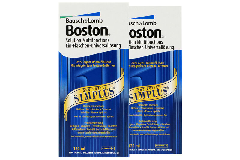 Boston Simplus zeichnet sich im wesentlichen durch 4 Produkteigenschaften aus: ein hochwirksamer Proteinentferner ist bereits integriert, ein Multi-Desinfektions-System reduziert Augeninfektionen, der integrierte Wirkstoff Poloxamin entfernt zuverlässig Schmutz und Ablagerungen und eine spezielle Kombination aus Gleitmittel und Viskose ummantelt die Kontaktlinse mit einem dämpfenden Feuchtigkeitskissen. Boston Simplus All-In-One-Lösung ist die Pflege für formstabile Kontaktlinsen -so gut und so sicher wie eine 2-Komponenten-Pflege – und dass mit integriertem Über-Nacht-Proteinablöser, der abendliches Abreiben der Kontaktlinsen überflüssig macht.