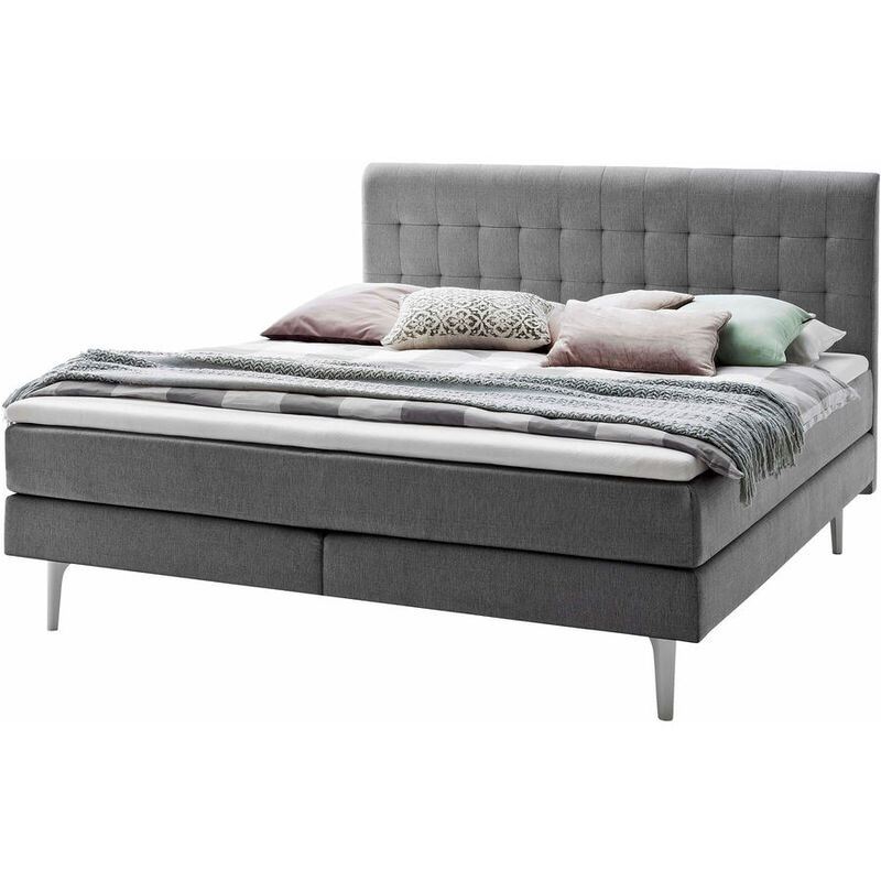 Boxspring-Bett – Boxspringbett Annabe – Stoff – B 162 T 208 H 118.5 cm – Inkl. Matratze, Kopfteil gesteppt, Füsse weiss lackiert, ohne Topper und ohne Holzleisten
