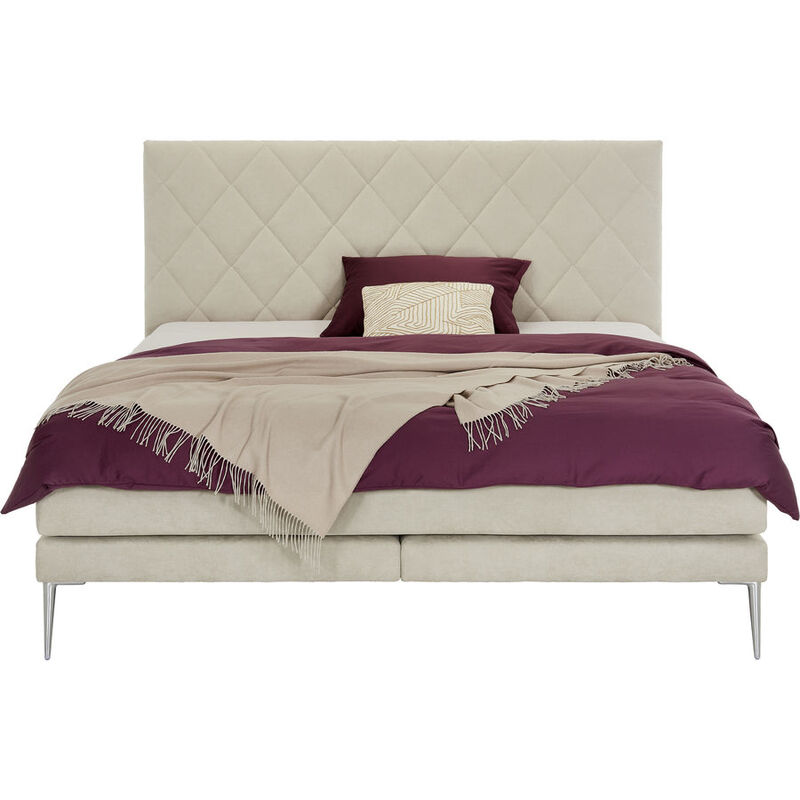 Boxspring-Bett – Boxspringbett Bela – Stoff – B 180 T 200 H 125 cm – Stellmass Bett (Breite x Länge x Höhe inkl. Kopfteil) 192/208/125cm Höhe Bettrahmen (ohne Kopfteil) 31cm Höhe Kopfteil (nur Kop – Stoffbezug beige, Box Taschenfederkern getrennt, Matratze Taschenfederkern 500 H3/H4 durchgehend, inkl. Kopfteil und Füsse Aluminium, ohne Topper
