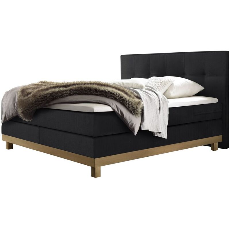 Boxspringbett mit PU-Schaum-Topper fest, Base-Top – Boxspringbett Bella – Eiche – B 160 T 200 H 122 cm – Stellmass: 168 x 210cm, PU-Schaum-Topper, RG 35, 5cm hoch – Matratze: 800 Taschenfedern, Wattierung 100% PES; Topper: Bezug 100% PES, Füllung 100% Klimawatte; Box: 288 Bonellfedern