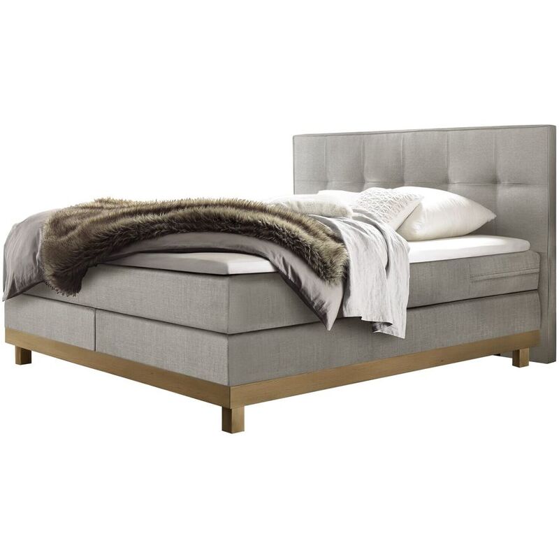 Boxspringbett mit Visco-Topper medium, Agrea-Top – Boxspringbett Bella – Eiche – B 180 T 200 H 122 cm – Stellmass: 188 x 210cm, Visco-Topper RG 50, 8cm hoch – Matratze: 900 Taschenfedern; Wattierung 100% PES; Topper: Bezug 100% PES, Füllung 100% Klimawatte; Box: 336 Bonellfedern