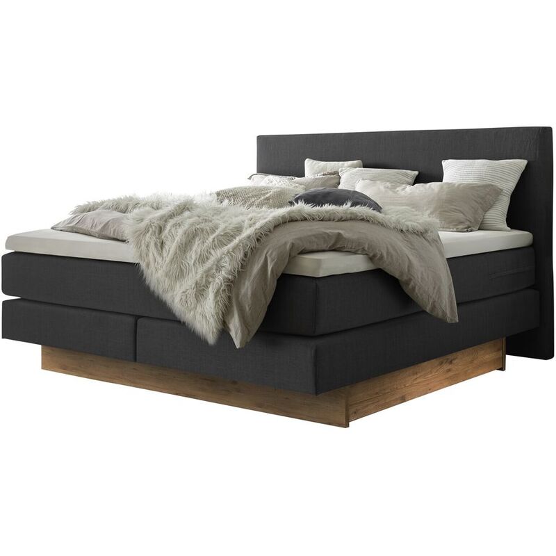 Boxspringbett mit Visco-Topper medium, Agrea-Top – Boxspringbett Denver – Eiche – B 160 T 200 H 120 cm – Stellmass: 168 x 210cm, Visco-Topper RG 50, 8cm hoch – Matratze: 800 Taschenfedern, Wattierung 100% PES; Topper: Bezug 100% PES, Füllung 100% Klimawatte; Box: 288 Bonellfedern