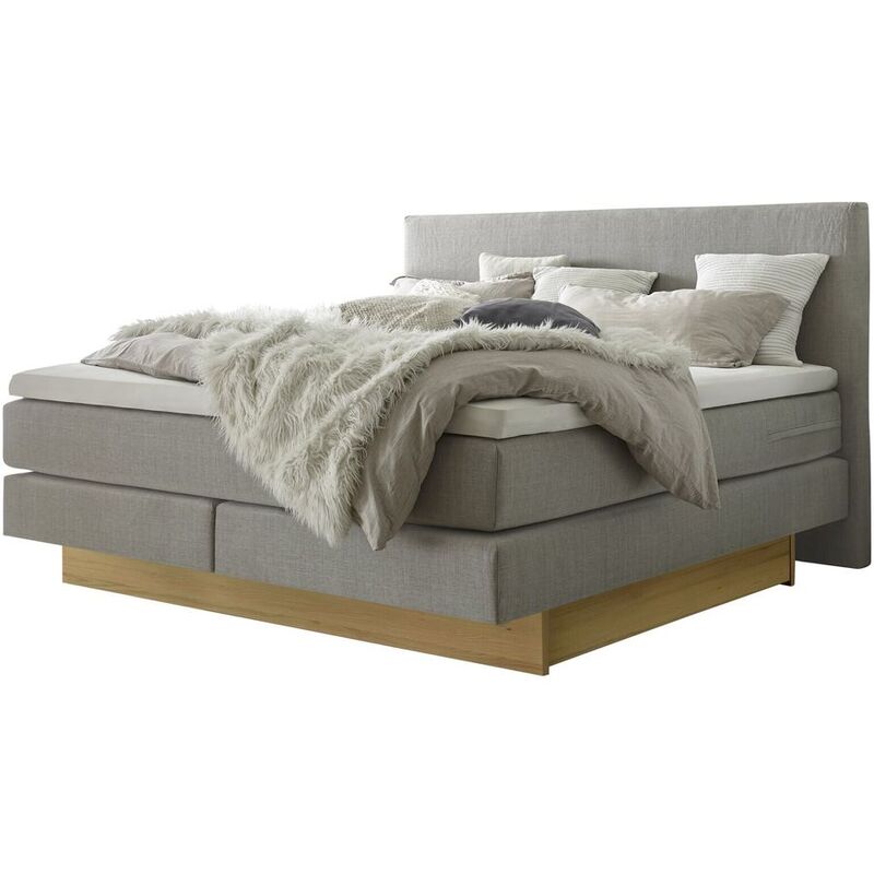 Boxspringbett mit PU-Schaum-Topper fest, Base-Top – Boxspringbett Denver – Eiche – B 160 T 200 H 120 cm – Stellmass: 168 x 210cm, PU-Schaum-Topper, RG 35, 5cm hoch – Matratze: 800 Taschenfedern, Wattierung 100% PES; Topper: Bezug 100% PES, Füllung 100% Klimawatte; Box: 288 Bonellfedern