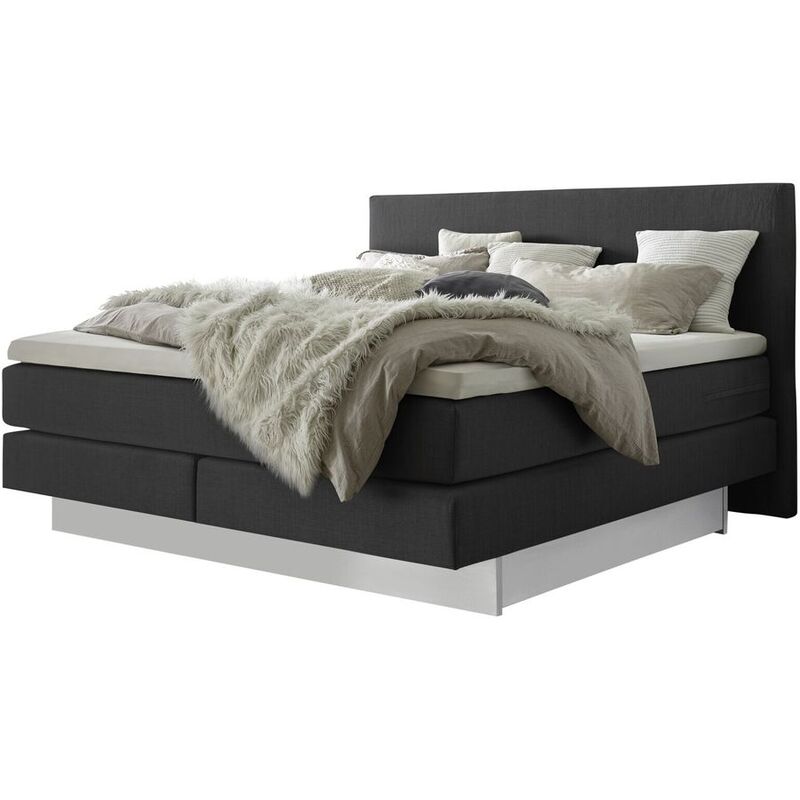 Boxspringbett mit PU-Schaum-Topper fest, Base-Top – Boxspringbett Denver – Eiche – B 180 T 200 H 120 cm – Stellmass: 188 x 210cm, PU-Schaum-Topper, RG 35, 5cm hoch – Matratze: 900 Taschenfedern; Wattierung 100% PES; Topper: Bezug 100% PES, Füllung 100% Klimawatte; Box: 336 Bonellfedern