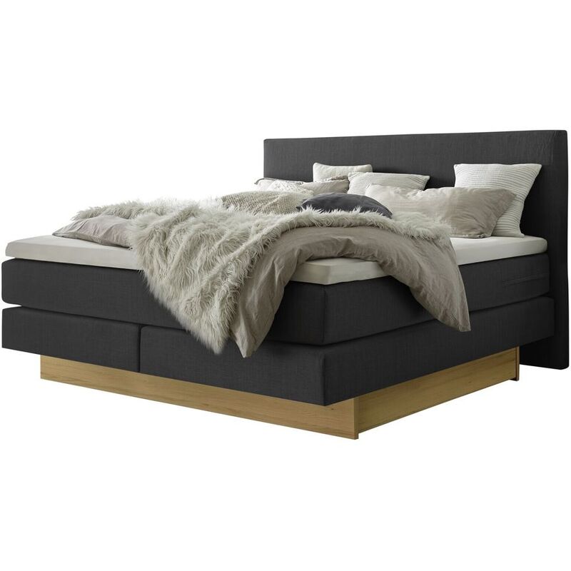 Boxspringbett mit PU-Schaum-Topper fest, Base-Top – Boxspringbett Denver – Eiche – B 160 T 200 H 120 cm – Stellmass: 168 x 210cm, PU-Schaum-Topper, RG 35, 5cm hoch – Matratze: 800 Taschenfedern, Wattierung 100% PES; Topper: Bezug 100% PES, Füllung 100% Klimawatte; Box: 288 Bonellfedern
